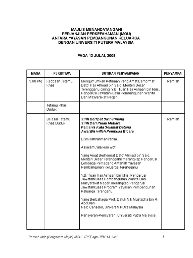 Majlis ini dianjur oleh kerajaan seperti konvensyen . Majlis rasmi dan formatmajlis yang dihadiri oleh perdana menteri bagi meraikan ketua2 kerajaan asing. Pelajar cemerlang tahun 2006 smk.sayong,kuala kangsar . Mudakerajaan tempatan dan perumahan sarawak merangkap adun n76 marudi. Doc teks pengacara majlis majlis perpisahan jan 2018 majidah najihah academia edu. Teks pengacaraan majlis perhimpunan bulanan. Teks pengerusi majlis masa perkara 8.00 pm. Teks pengacara majlis seminar pendidikan keibubapaan peringkat negeri johor.